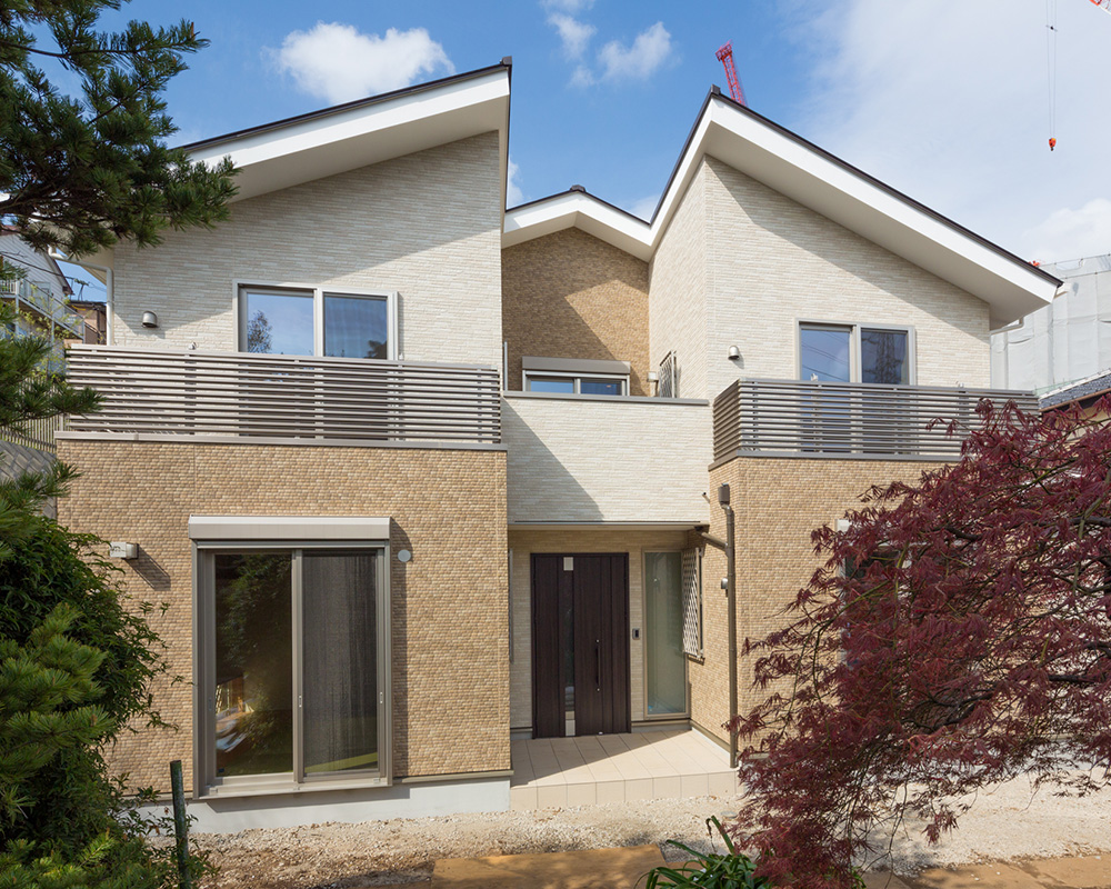 木造2×4工法に用いられる枠材を鉄に置き換え、外張断熱方式を標準とした住宅です。